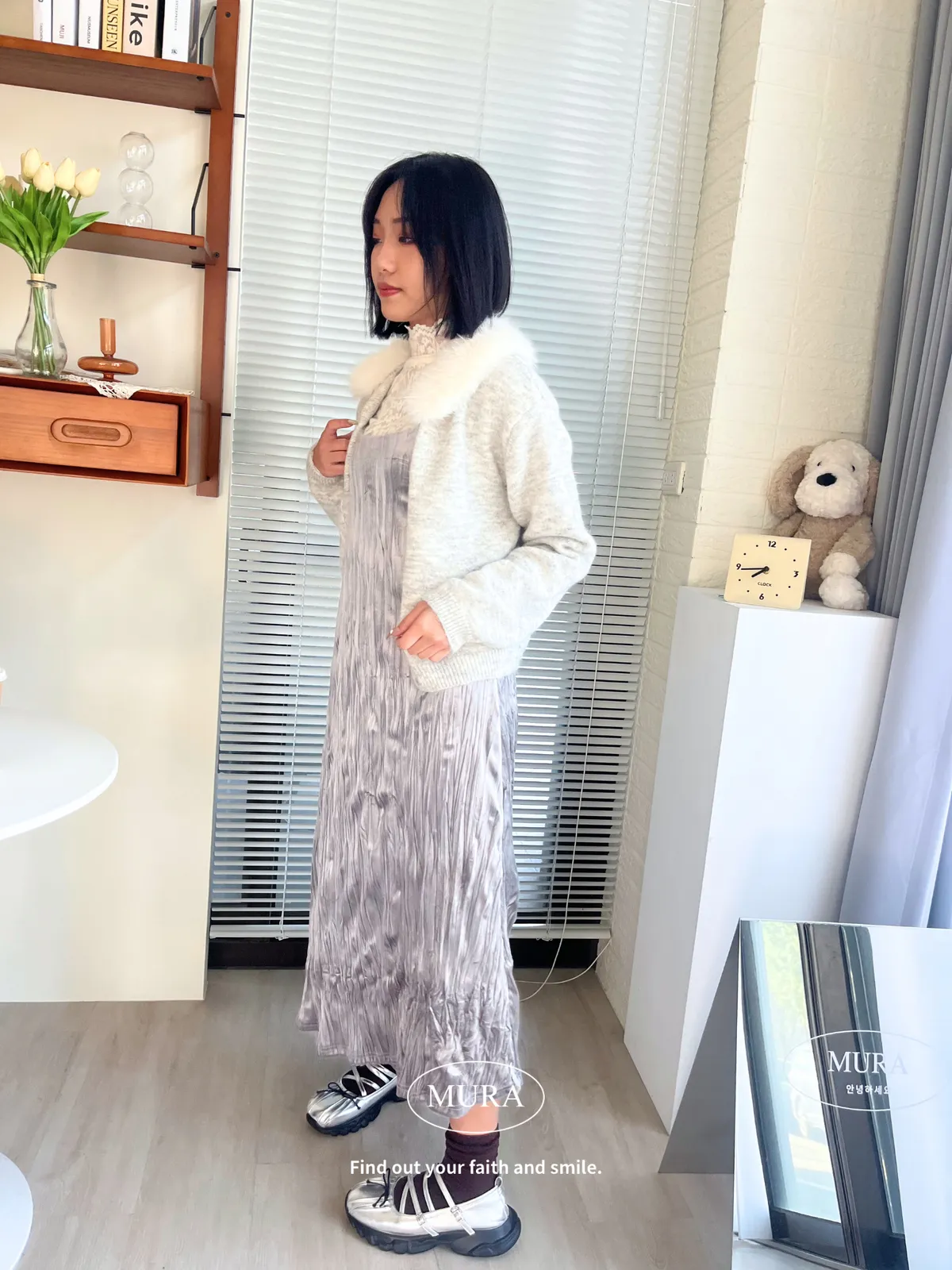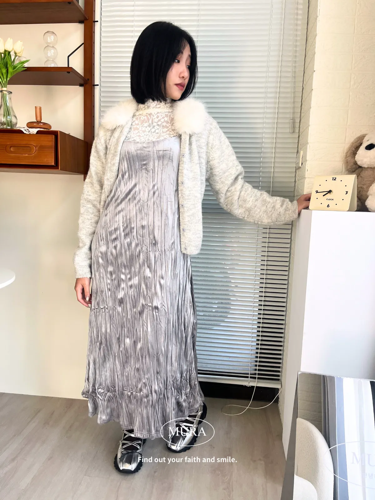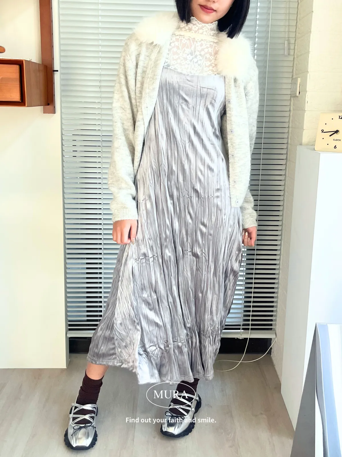 浪漫飄逸 皺皺光澤絨感吊帶長洋3colors