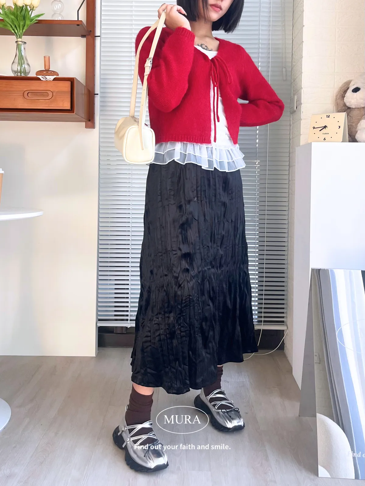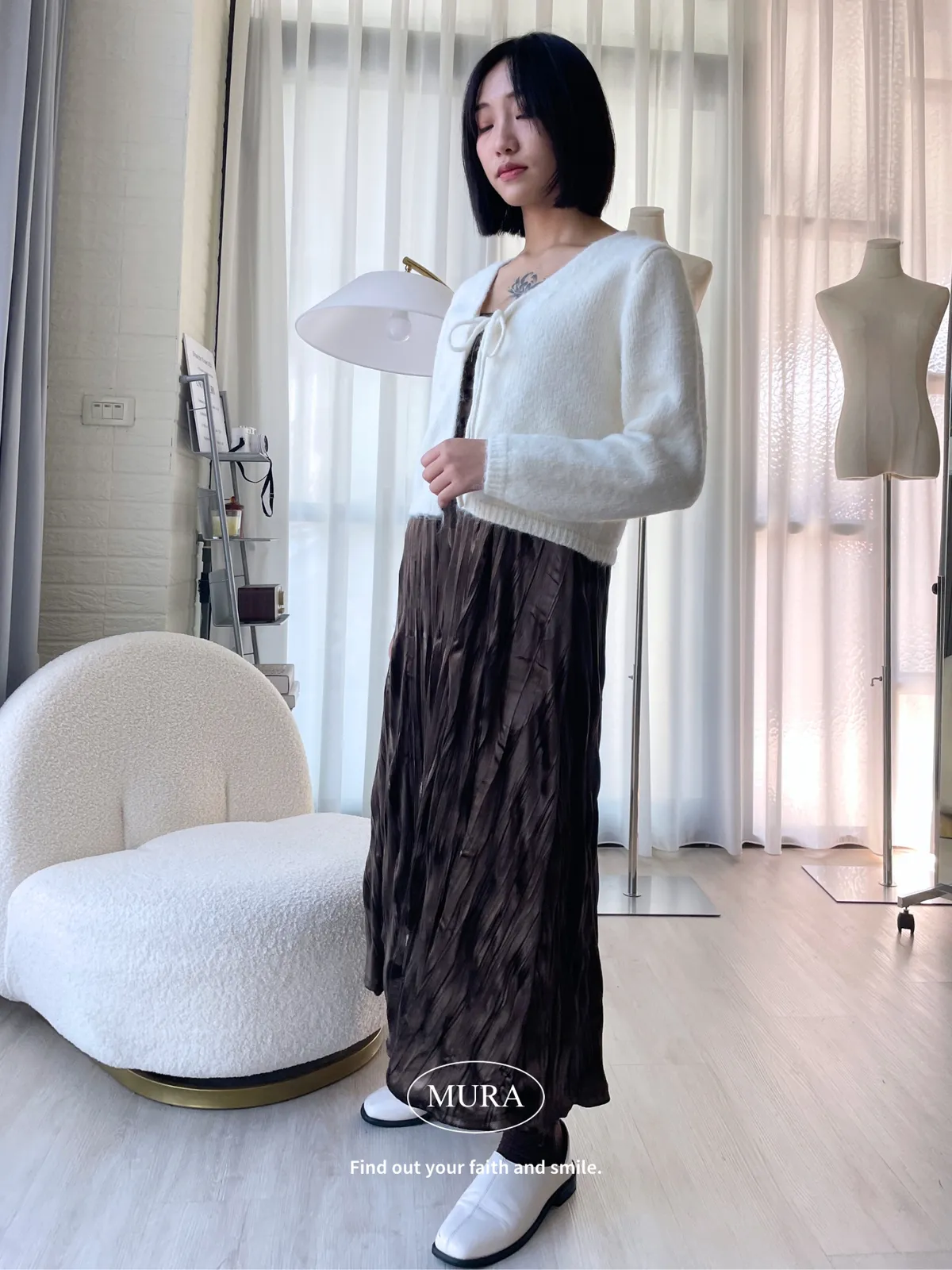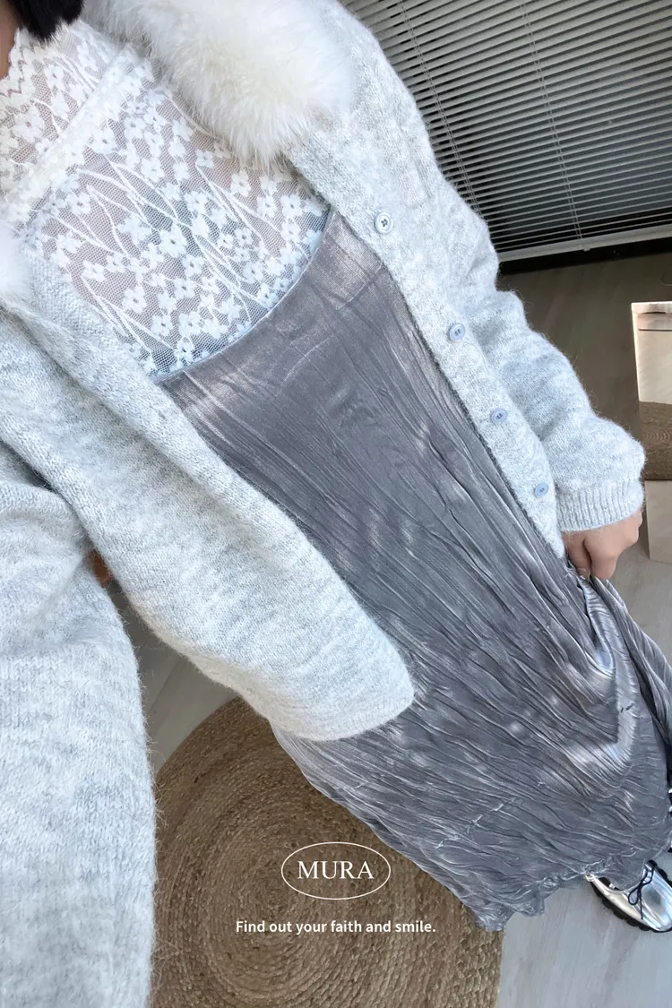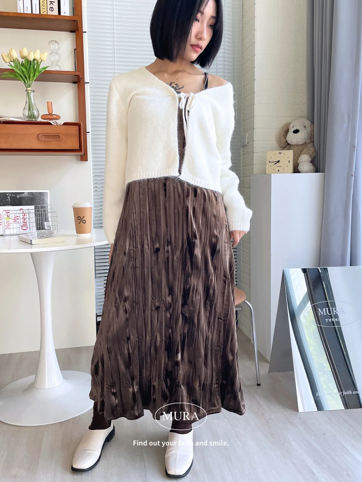 浪漫飄逸 皺皺光澤絨感吊帶長洋3colors