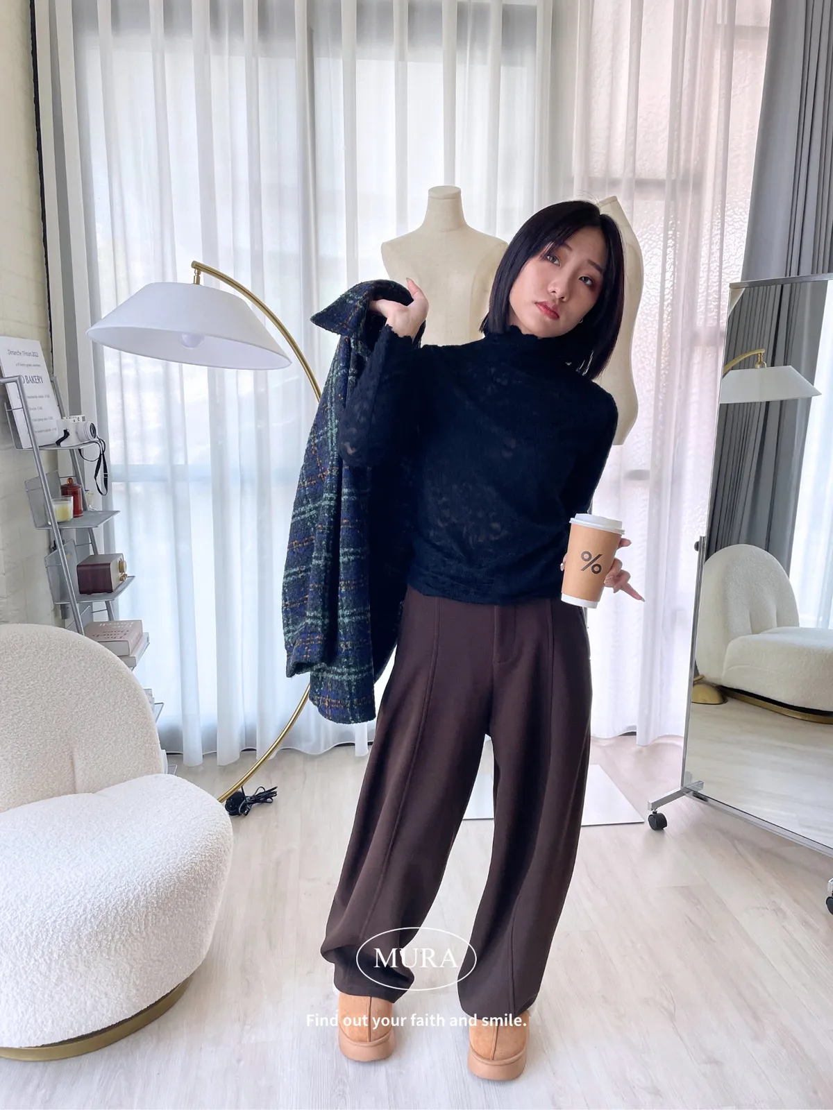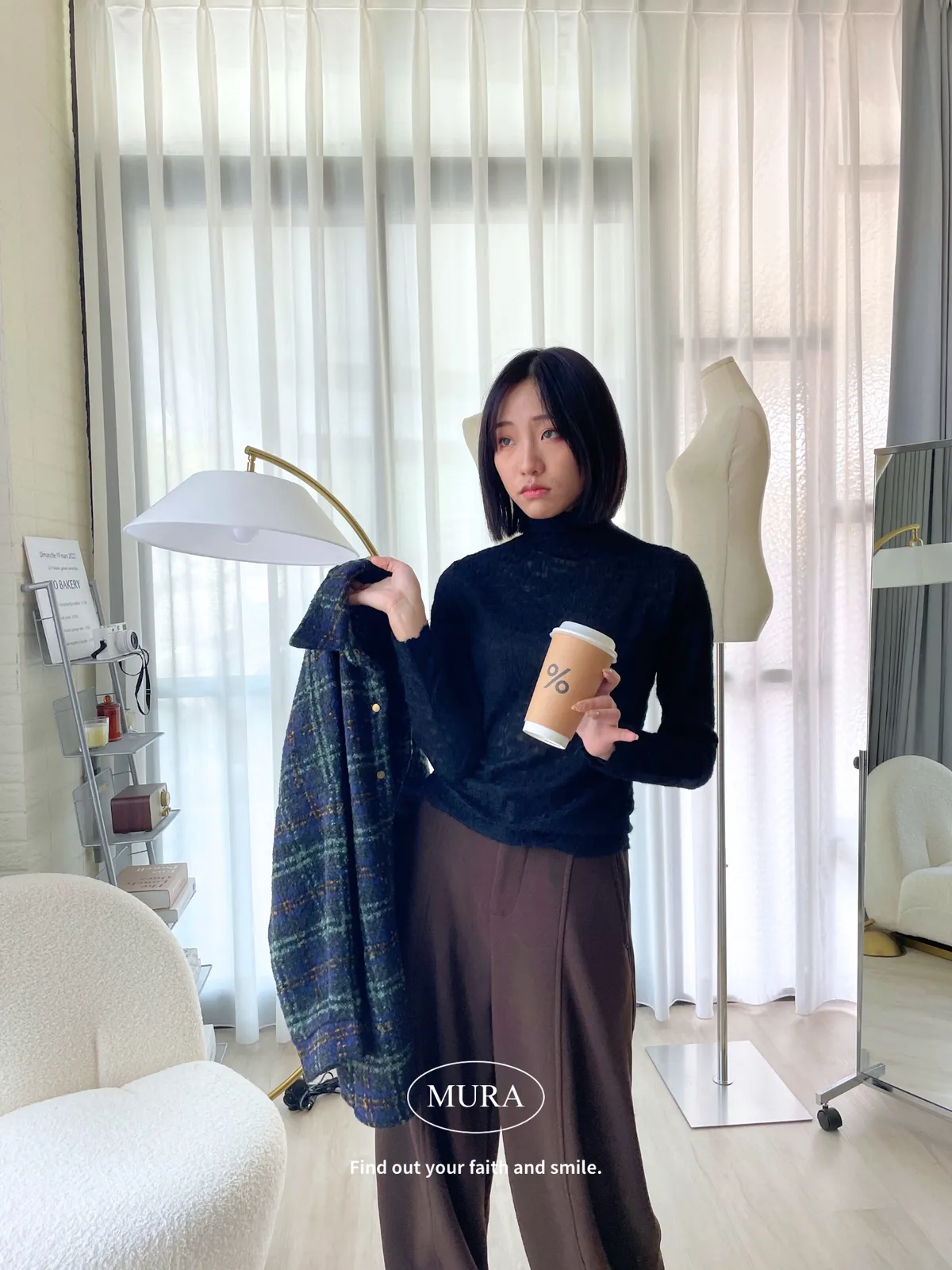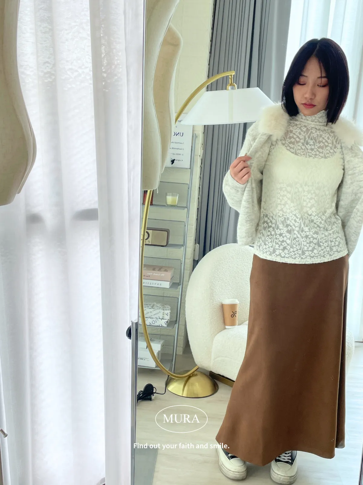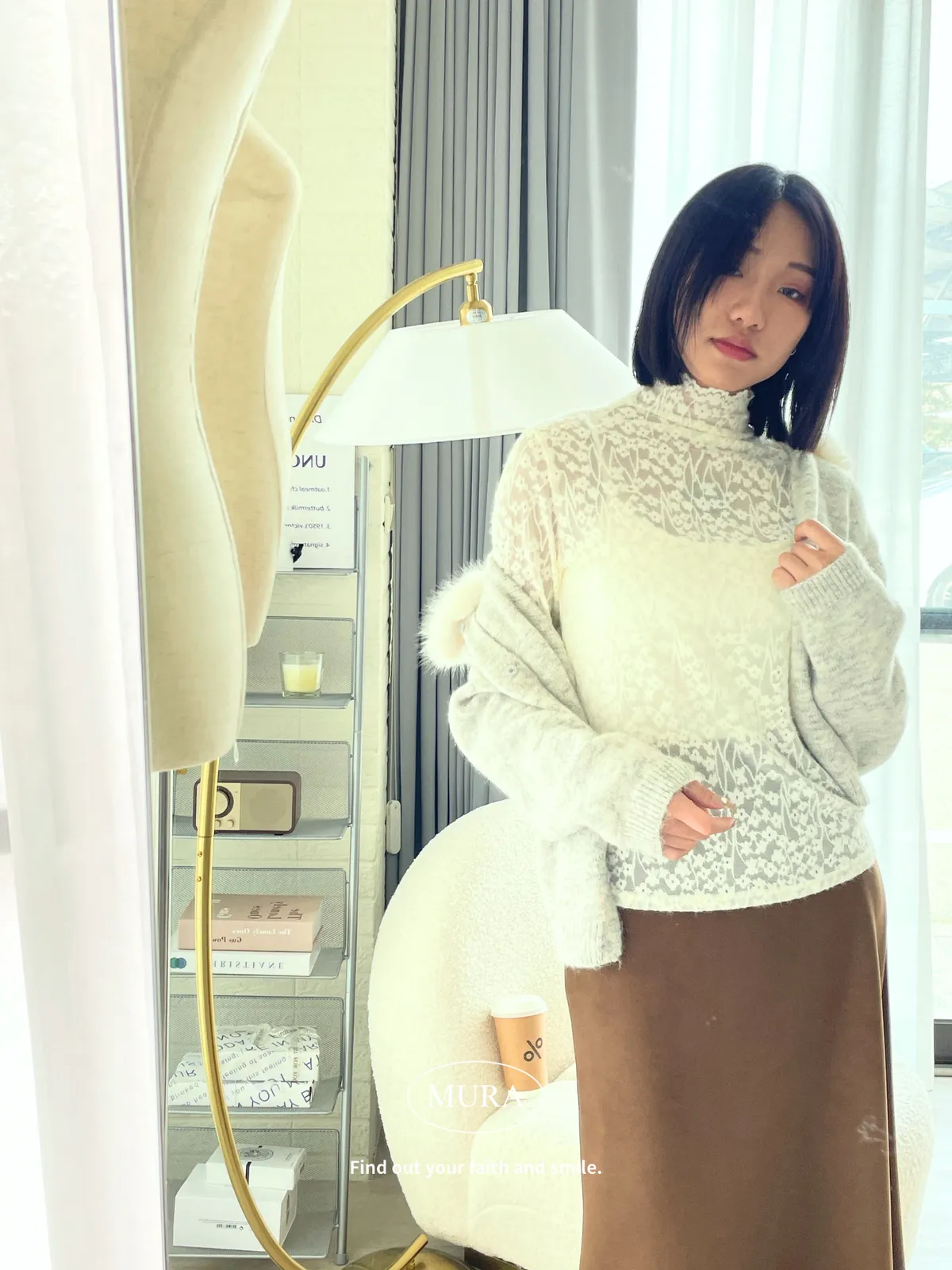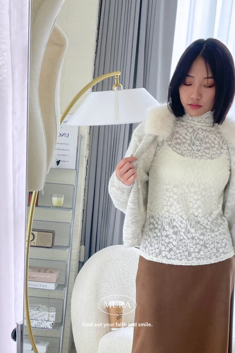 不張揚的點綴 絨感蕾絲小花微高領上衣2colors