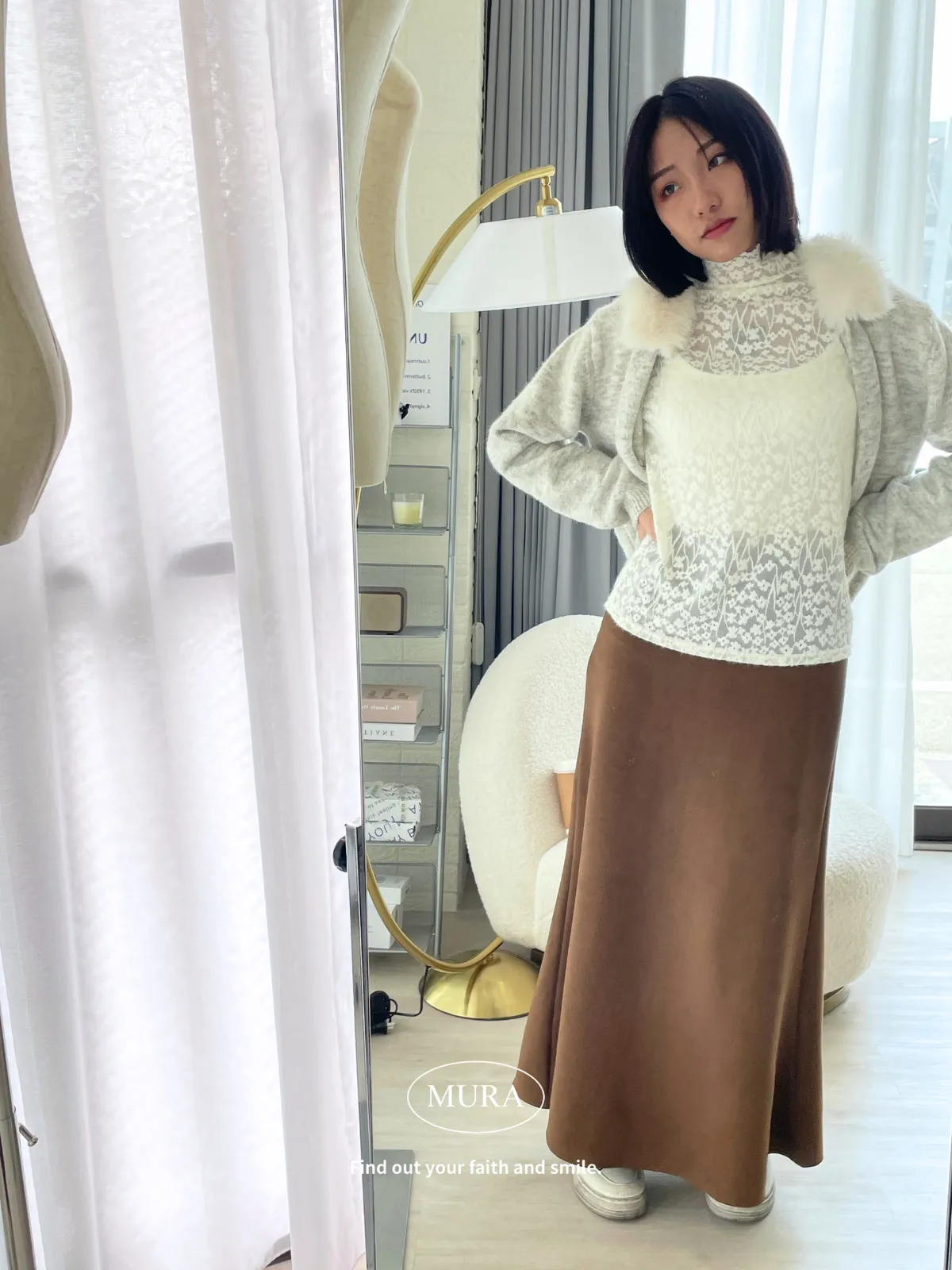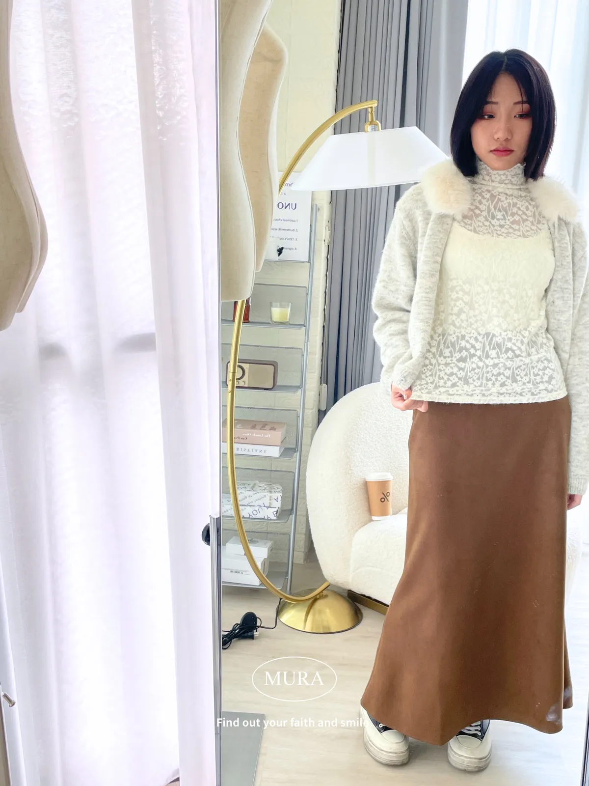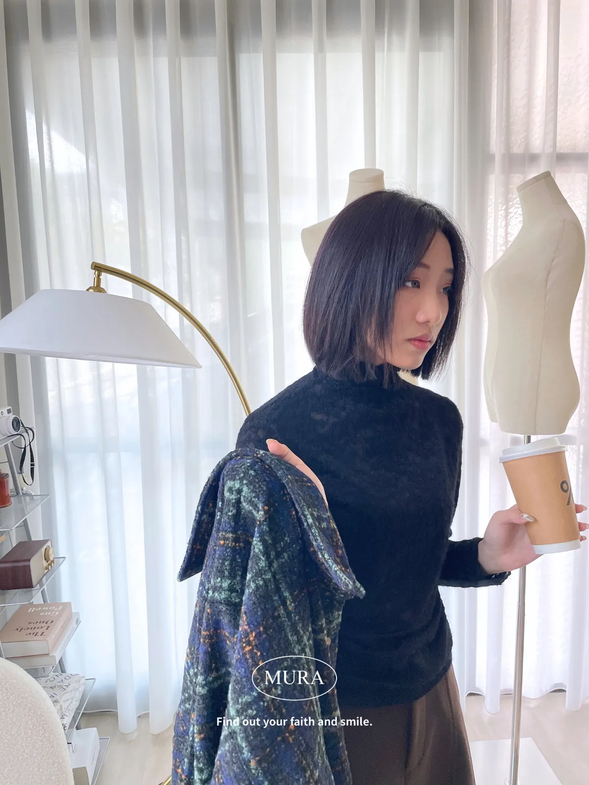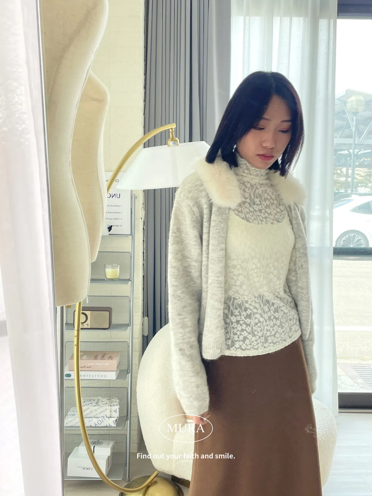 不張揚的點綴 絨感蕾絲小花微高領上衣2colors